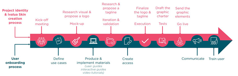 Lisätäksemme käyttäjien sitoutumista ja edistääksemme käyttöönottoa kehitimme houkuttelevan visuaalisen ilmeen, jossa on ainutlaatuinen logo ja yhtenäiset grafiikat, jotka sulautettiin saumattomasti Ivalua-alustaan.