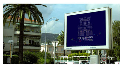 Myös banderolleja ja totemeja suunniteltiin. Tarjosimme monipuolisia viestintävälineitä auttaaksemme Lyonin kaupunkia edistämään sen päätapahtumaa.